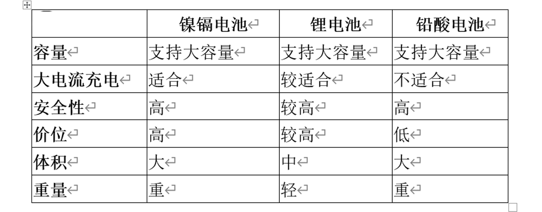 AGV使用的電池主要有鎳鎘電池、鋰電池、鉛酸電池,這三種電池主要特性對(duì)比如表1。