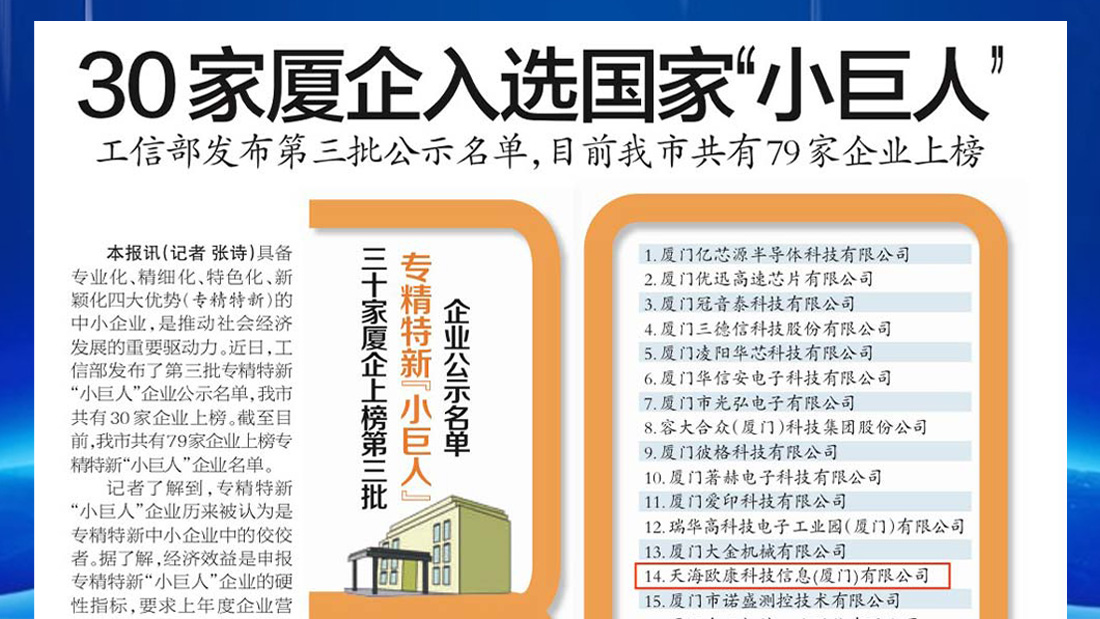 三十家廈企上榜第三批專精特新“小巨人”企業(yè)公示名單