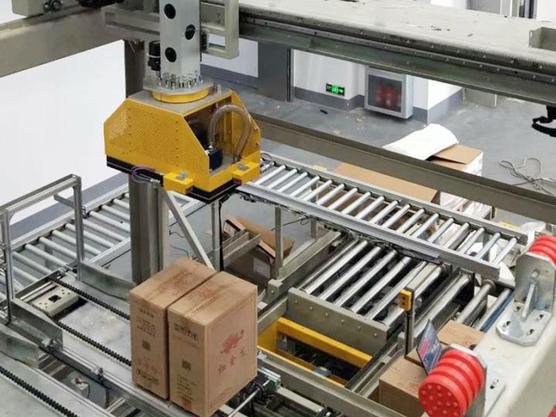 三維直角坐標機械手是一種以三維空間作為運動基礎,以單軸導軌作為運動載體,由伺服電機作為驅動源,通過專用控制器的精準控制,搭載專有設備終端,以形成三維空間內任意位置都可到達的一種專用設備。而三維直角坐標拆垛機械手,是在此基礎上,深化發展而來的一種專有設備,在該三維直角坐標機械手終端處,搭載了一套可旋轉抓取自動手抓??赏瓿蓪ν斜P箱件物料的搬運工作。