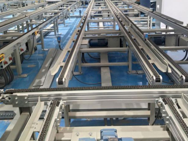 主要結構:由機體、驅動裝置、張緊裝置、輸送鏈條、鏈條導向、導向護欄等組成。傳動系統結構簡單、物料輸送穩定可靠、用于重載貨物的傳輸。控制方式可通過手動、系統單機自動及聯機自動,主要用于整托盤的輸送。