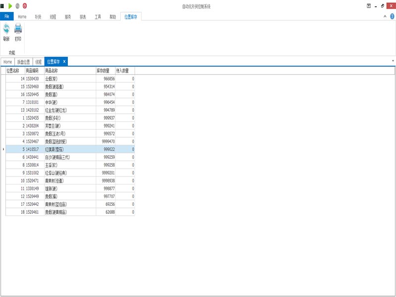 THOK-自動化補貨監控系統銜接自動化分揀管理系統和分揀補貨PLC之間,從自動化分揀管理系統獲取補貨煙道以及補貨作業數據,利用LED提示屏提示補貨工作人員進行補貨作業,根據分揀設備作業完成情況自動調整對分揀設備進行件煙補給作業,在件煙傳輸過程利用SICK 掃描器將取得的件煙條碼發送給“一號工程件煙出庫掃描系統”,調度智能補貨小車對通道機進行自動補貨。