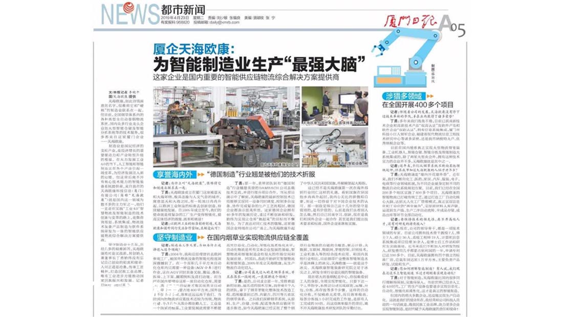 廈企天海歐康:為智能制造業生產“最強大腦”,這家企業是國內重要的智能供應鏈物流綜合解決方案提供商 -- 來源:廈門日報